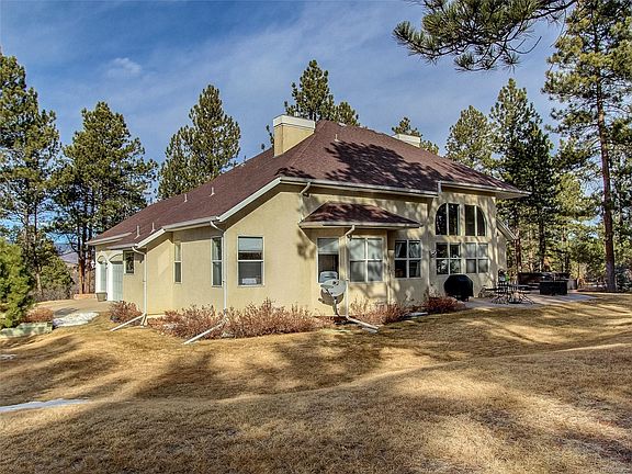 Like living in your very own private sanctuary. Rich with wildlife, over 30 species of birds. 5 acre lot has been meticulously cared for and mitigated. Lush green grass with sprinkler system. Custom Stucco ranch style home that has been well cared for by the original owners. Home offers 5 bedrooms 5 bathrooms 3 gas fire places Master retreat off the kitchen, 3 car garage and plenty of room for entertainment. Location is by far one of the best in area, close to Bear Dance golf course and just a short 15 minute drive to Castle Rock. If you have not experience Larkspur peaceful living you have to come check it out. You will truly enjoy this Colorado lifestyle living!
