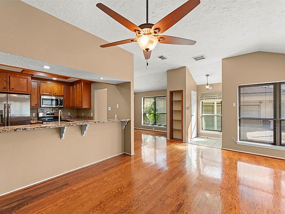 This charming patio home is nestled in the quiet, community of Windfern Garden, with easy access to Highway 290 and Beltway 8N, and just 20 minutes from Downtown Houston, The Galleria, Memorial City, and Intercontinental Airport. The living area features vaulted ceilings and a wall of windows that flood the space with natural light. The great room includes a brick fireplace and connects to a formal dining area. Three spacious bedrooms offer walk-in closets, built-ins, and generous storage. Additional highlights include wood and laminate flooring, granite kitchen countertops, and a fully fenced yard with a cozy courtyard and deck. Neighborhood amenities include a swimming pool, tennis courts, clubhouse, and playground. Located in the highly regarded Cy-Fair ISD. Refrigerator included. Property is available for immediate move-in.We hope you enjoy the welcoming ambiance and comfort of this delightful residence.