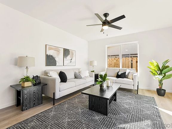 Gorgeous, newly renovated 4 bedroom, 2 bath home in Mira Mesa! Turn key, ready for you to move right in! New modern kitchen with a farm sink, quartz countertops, custom tile backsplash, and new stainless steel appliances. All new bathrooms with beautifully tiled showers. Spacious Primary bedroom with ensuite bath. All new waterproof vinyl flooring in common areas and carpet in bedrooms. New windows, interior doors, closets, and recessed lighting. Fresh paint inside and out. Private backyard with patio, great for entertaining with family and friends. Great location, nearby shopping, restaurants and close proximity to MCAS Miramar and excellent schools! 2 car garage. NO Mello Roos or HOA.