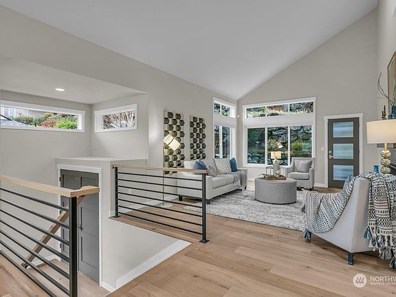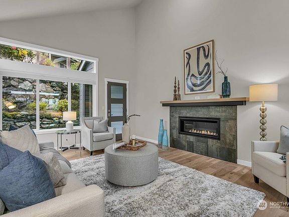 Impeccably transformed corner townhome in gated UP community! Professionally designed, constructed & permitted, from the studs out. Contemporary, cozy, light & bright! Cathedral ceilings, windows & glass doors galore! Kitchen: custom cabinets, 36" gas stove, 36" refrigerator, quartz counter & backsplash. Baths: tile, quartz, glass surround showers, garden tub. Gas fireplace. South facing patio with extendable awning, views to the Cascades; north-side patio & gardens. Main level primary suite. Remodel,2018; Roof,2020; A/C,2018; furnace, 2012; WaterTank 2020; exterior paint, due 2025.Lock 'n Go! HOA full landscape, exterior painting & roof maintenance! Lower level storage: one@1600+/- cu. ft.; 360 Degree Virtual tour + Floor plan attached.