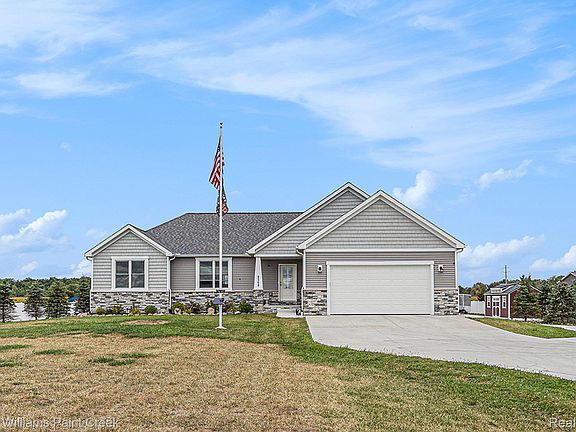 Move-in condition, immediate possession, completely ready, Welcome to your dream ranch home, where spacious living meets modern luxury! W/ $100,000 Heated Pole barn This stunning 5-bedroom, 3-bath property boasts over 3,248 square feet of thoughtfully designed space, just a hop, skip, and a jump away from downtown Almont and conveniently located near the M-53 corridor. Imagine hosting family gatherings in the inviting open floor plan, highlighted by soaring 9-foot walls and a cathedral ceiling that creates an airy, bright atmosphere. The finished daylight basement offers even more room for fun and relaxation! This home is not just beautiful but also smart, featuring spray foam insulation that ensures energy efficiency—making it as kind to your wallet as it is to the environment. The chef's kitchen is a culinary paradise, adorned with sleek white shaker cabinets, a spacious walk-in pantry, and a stylish island, all complemented by stunning quartz countertops. Each bathroom is a sanctuary, showcasing luxurious granite finishes and elegant undermount sinks. Picture yourself unwinding in the primary bedroom, complete with a dreamy en-suite bathroom and a generous walk-in closet. This home is a blank canvas for your future memories—family BBQs, cozy movie nights, and backyard adventures await! Don’t let this opportunity slip through your fingers; contact Agent today and take the first step toward making this incredible property yours!Boiler radiant heat of the entire pole barn floor, put in 2025 new energy efficiency technology
