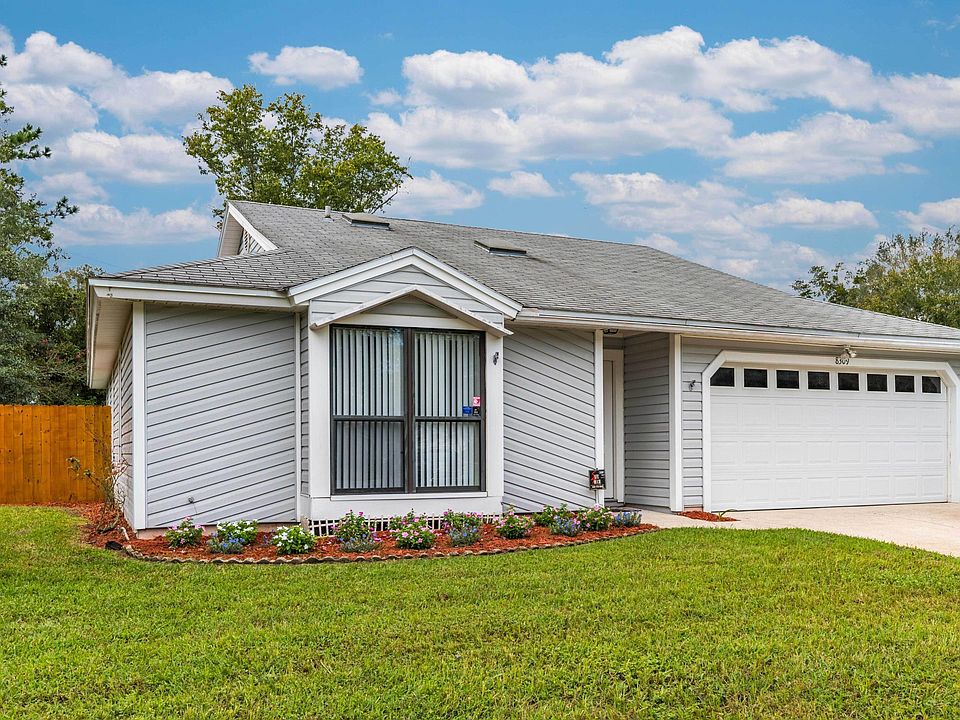 This home has it all! New and updated kitchen and bathrooms, NO CARPET anywhere - all tile flooring. MASSIVE, fully fenced backyard (0.27 acre lot). Tankless ECO electric water heater, Rheem 3 ton HVAC, and wood fencing. When you walk into the home, there are 2 bedrooms and a full bath to the left. As you continue walking through the hallway, it opens up beautifully into the living room with vaulted ceilings. As you walk through the living room, you'll find the tastefully remodeled kitchen! Kitchen is definitely a jaw dropper! Located near shopping, the interstate and NAS Jax. Come to see it today!