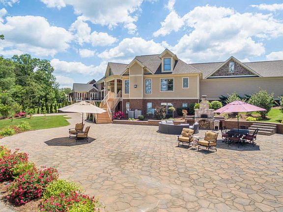 Breath taking water front property located on Savannah Bay. This gracious home was built with enjoying the views and entertaining in mind. The gorgeous architectural details include corbel ceilings, wood beams, cherry floors, custom built in furniture grade cabinetry and ceiling details. Entertaining guests for an evening or extended time is effortless thanks to wonderful indoor and outdoor living spaces, private bedroom wings, two kitchens, two laundry rooms, arcade room and home theater. Covered stationary dock, newly installed landscaping, custom patio with pizza oven are just the beginning of the wonderful details of this home. Please see attached document for complete list. Oversized main level master suite features sitting area and view of water. Master bath has separate vanities, large soaking tub and separate showeWalk in closet is room size with hardwoods. Upper level features two massive bonus/flex spaces with mini kitchen and two additional bedrooms. Lower level has family room with fireplace, wired media room, second study, additional laundry room and bedroom. Two covered patios overlook beautiful water views. Covered stationary dock is waiting for summer! Coveted lakefront property matched with this incredible home is truly a rarity. Buyer to verify square footage.