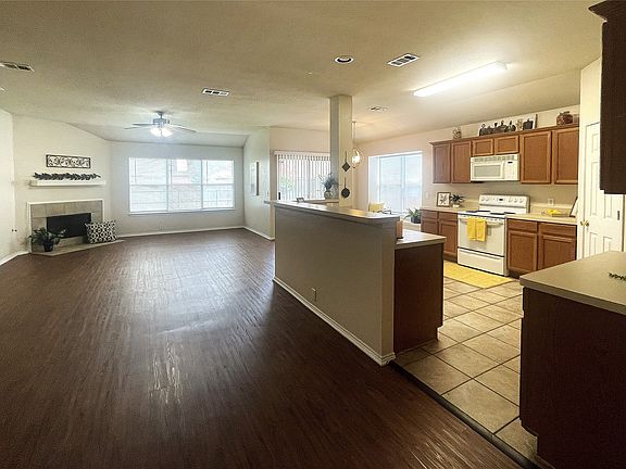 This inviting home features a spacious open floor plan designed for effortless flow and functionality. The expansive living room, highlighted by a charming corner fireplace, creates a warm and welcoming atmosphere. A dedicated dining area provides the perfect setting for gatherings, seamlessly connecting to the well-planned kitchen, which boasts ample cabinetry, a separate pantry, and thoughtful design for convenience.