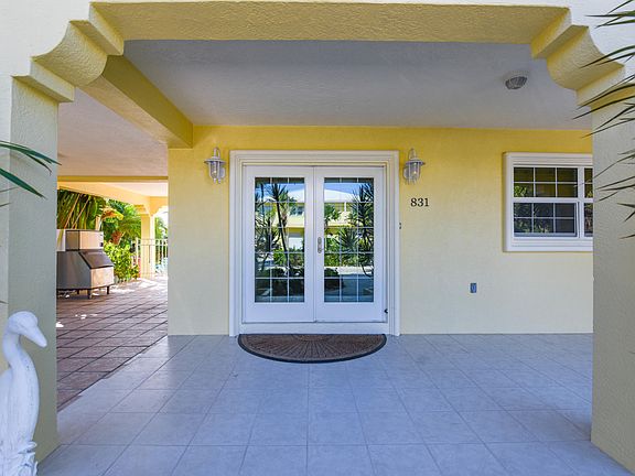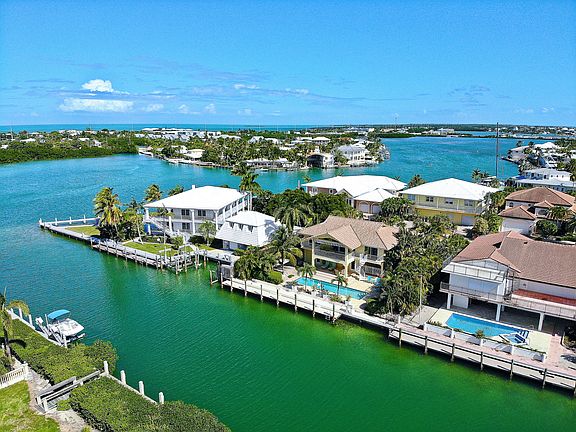 Just 1 lot in from open water, this pool home offers views and quick ocean & bay access. Downstairs is a fully Guest Suite. Interior stairs lead to large open living area with updated kitchen and provides a split floor plan for the generous master suite and guest bedroom and bath. From the living area go out onto the large covered dining porch with fabulous views and overlooks the 90' seawall with step-down wooden dock on a deep water canal and concrete pool surrounded by spacious decking. All this with mature tropical landscaping, end of street privacy and plenty of room for all of your toys with the garage/workshop, and carport.
