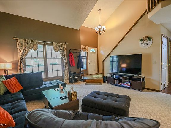 Do not miss your chance to see this inviting home in Massillon-Perry Local Schools. Opportunities like this do not come often. Sitting on a .37-acre lot, this 2,048 square foot contemporary greets you with a welcoming covered porch and a two-car garage. Inside, cathedral ceilings and an open staircase set the tone for the spacious layout, with the living room flowing into the dining area. The kitchen offers generous cabinet space, appliances, and a bar top perfect for casual gatherings. The dinette opens to a cozy family room with a fireplace and French doors leading to the wood deck overlooking the backyard. A convenient half bath and laundry room complete the main floor. Upstairs, the owner's suite includes a private bath, while two additional bedrooms and a second full bath provide room for family or guests. The lower level delivers plenty of storage with the option to finish for added living space. Schedule your private showing today and see why this home is the perfect fit for your next chapter.
