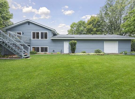 Meticulously maintained split level well cared for by the original owners! This home features views of the park directly across the street, a brand new roof, freshly painted inside & out & new carpet!! 3 bedrooms on one level w/ private 3/4 master bath! Oversized 4 car garage w/ room for storage & cement driveway! SS appliances w/ breakfast bar & desk in kitchen! Vaulted ceilings in living room! HUGE family & rec room w/ gas fireplace in the lower level! Fenced backyard w/custom-built playhouse, Directions Hwy 65 to 99th Ave W to Polk St S to 95th Ave W to Able St N to 95th Ln W to home on right.