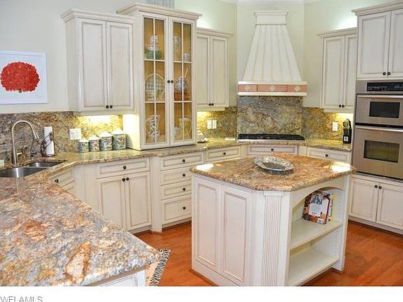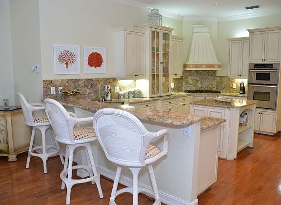 CANCELLATION!! OPEN FOR 2016 SEASON!! Make An Offer! South-to-West views of the lake and fairway of hole #5. French Provencal flavor and charming curb appeal are enhanced by deep set backs fromt the street allowing for lush landscape and privacy, with a brick driveway leading up to a Coral stone entrance, columns and terraces and a solid wood entry door. The spacious plan boasts 4,180 sq. ft. of under air living area all on one level, with ample stoarge and air-condititioned garage. As you enter the home your eyes focus beyond the open living room with gas fireplace and walk-through wet bar to the gorgeous outdoors with a large covered sitting area, huge gas-heated full sized pool with spa and outdoor kitchen. A special feature is the guest house cabana with full bath and a terrace covered by an arbor with night-blooming jasmine. Furthermore, the home features wood floors, an updated kitchen w/granite & new stainless steel appliances, including 5-burner gas cook top. Bedrooms Set-up as King, King, 2 Queens, and a Queen in The Cabana.