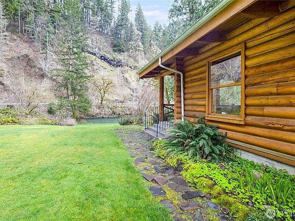 Fisherman’s Paradise, custom-built log cabin with 391 feet of Kalama River frontage, ready to make your own! 4.82 acres of park-like setting located at the end of a dead-end road with the World Class Slab Hole Fishing location just off the bank. Log cabin provides main floor living with a spacious kitchen/living area and large loft. 2-bay shop with 1-bed 1-bath guest quarters with additional loft. Don’t miss the opportunity to make this amazing property your next home!