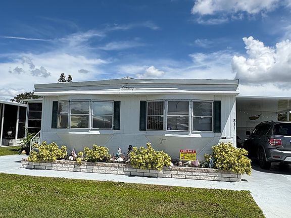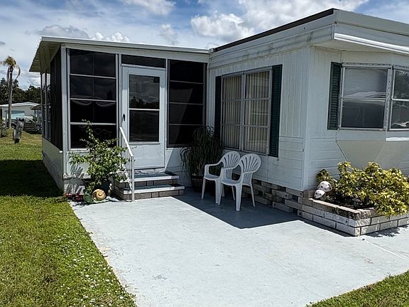 Motivated seller ready to move closer to family. Nice two bedroom and two bath home with a large screened in lanai that also includes FL glass. The kitchen is open to the dining room, flowing directly into the large living room. The new shingle roof, with a transferrable warranty was installed just five months ago. The HVAC, with a transferrable warranty, is only three years old. The large primary bedroom includes an ensuite bathroom and a walk-in closet. The guest bedroom and bath are also a nice size. The patio extends the outdoor space in the backyard for those fantastic cookouts! Colony Cove is a 55+ lot leased community. Included in the lot rent are water, sewer, trash, lawn maintenance, and so many amenities. Amenities include: six heated pools, five clubhouses, a gulf access marina, fishing pier, two fitness centers, tennis, pickleball, shuffleboard, billiards, dog park, and library. Colony Cove is a community that is well known for offering a lifestyle with as many activities and social events as you would like to be involved in!