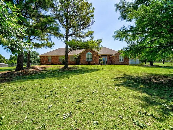 Looking for a home with some privacy and a little room to breathe? Here it is then, this charming home sitting on a 2+ acre lot with beautiful mature trees is awaiting a new owner!! Entering the home you're greeted by a huge living room with berber carpet and a beautiful wood burning fireplace! My favorite space in the home is definitely the kitchen!! It offers tons of cabinets and ample counter space for every chefs needs! Off the kitchen you'll also find the study with beautiful built ins. The master is separate from the secondary bedrooms and is very spacious! The master bathroom offers a large vanity and a whirlpool tub as well! Outdoors theres a 20x20 shop, cute fire pit area and storm shelter! Schedule a private tour or come see it at the open house Sunday 7/2 from 2-4 PM!