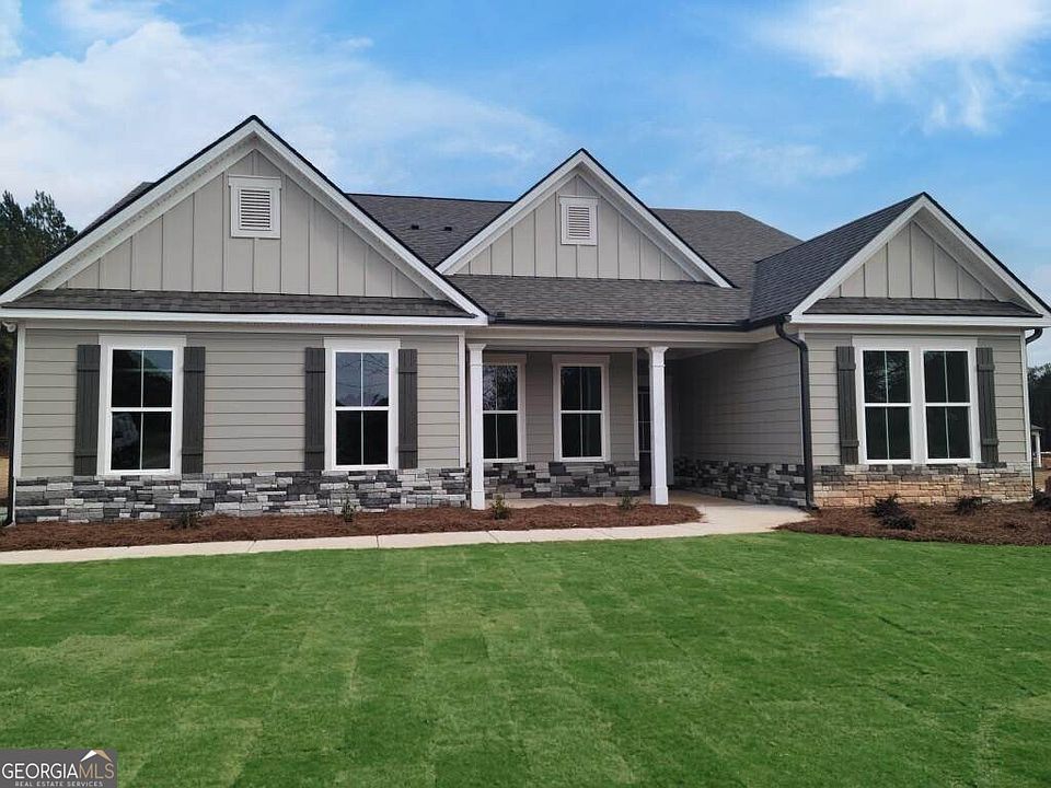 The Rosewood Plan built by My Home Communities. Step into this Craftsman Farmhouse Beauty with its extensive foyer flanked with 2 halls for privacy, driftwood LVP planks leading to, 2 spacious secondary bedrooms with large farmhouse style windows and doors, separated by a full bath with granite countertops and tile floors. Large multi - generational suite with full bath nestled away on the opposite side of the foyer. The modern open Kitchen with its cabinets with molding, walk in pantry, pendant lights, 8.9 ft island with Dallas white granite countertops is a culinary dream. The adjacent dining area adorned with modern lighting is sure to seat 6 plus with a view to the large family rooms stack stone fireplace creates an inviting ambiance for family and friends to gather. Large windows open the view to the generous covered patio that is perfect for outdoor gatherings and its view of nature. Retreat to the owner's hall tucked in the back of the home with its oversized primary suite with double trey-ceilings and a huge walk-in closet. The primary bath has a spa like tiled super shower with granite dual sinks. This well thought out home sits on 2+ acres in its own oasis and NO HOA. 100% USDA Financing Available. Quick Move-In! *Matterport tour is not of the actual property but is an example of the floor plan* Actual home photos and *Secondary photos are file photos*