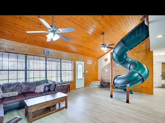 Family fun awaits at this incredible Yantis Home! With exciting outdoor amenities and an expansive interior with a game room and indoor slide, this 4-bedroom, 3-bath cabin is perfect for entertaining everyone. Check out the weekly bass fishing tournaments at nearby Lake Fork, tee off at top-rated local golf courses, or head home to enjoy the on-site zip line, fire pit, hot tub, and more!
