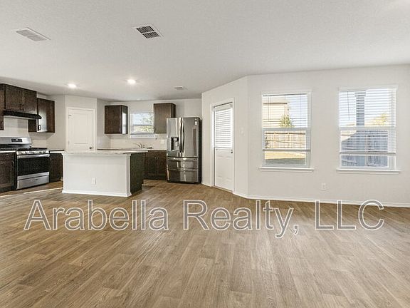 Welcome to a stunning two-story 1,625 sq. ft. home designed for comfort and convenience in the highly sought-after Redbird Ranch community. This thoughtfully designed home features 3 bedrooms, 2.5 bathrooms, and an inviting front porch leading into a spacious, open-concept living area. The adjoining kitchen and dining space are perfect for entertaining, complete with a large kitchen island, sleek black appliances, and granite countertops. Sliding doors open to a covered patio and backyard, offering a relaxing outdoor retreat. Downstairs also includes a storage closet under the stairs, a utility room conveniently connected to the garage, and durable vinyl flooring in the entry, living areas, and wet spaces. Upstairs, a versatile loft/game room provides additional living space, along with a private primary suite, two secondary bedrooms, and a full bathroom. Located in Redbird Ranch, residents enjoy access to top-notch community amenities and scenic walking trails.