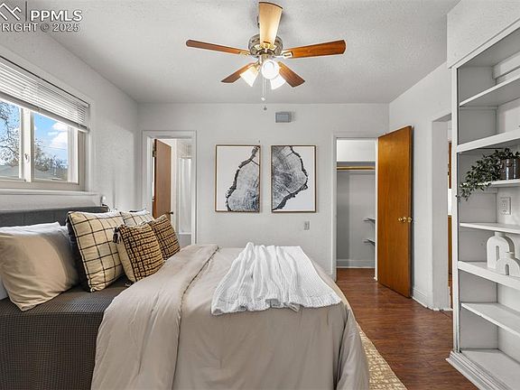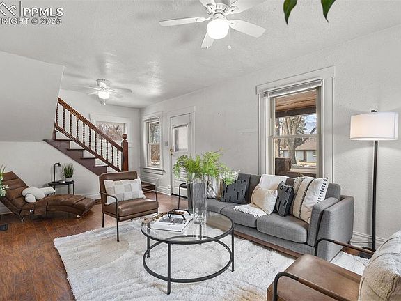 Nestled on a large corner lot between Downtown and Patty Jewett Golf Course just east of Colorado College, this quintessential Craftsman bungalow offers simplicity without sacrifice, where urban amenities meet quiet streets and trails are just a block away. The spacious front porch is this home's first statement, showcasing exquisite stonework and beckoning you to sit and savor your morning coffee under the shade of mature trees. Inside, you’ll find the hallmarks of Craftsman architecture: a simple and thoughtful floor plan that maximizes every square foot, handcrafted natural materials, and built-ins for character and practicality. The living room is open to the rest of the home and features a stunning wooden staircase that leads to the two bedrooms upstairs. From the living room, you enter a large, dedicated dining space with ample windows (new in 2021) and a kitchen with all the modern amenities you need, including stainless steel appliances and a washer/dryer. Beyond the kitchen is an additional room that can be used as an office, mudroom, or for extra storage. Rounding out the main level is the cozy primary suite with an en suite bath and built-in shelving to display treasures or create a reading nook. Outside, the newly installed wooden fence accentuates the spacious, flat lot—perfect for gardening, entertaining, or simply enjoying Colorado's stunning weather. An added bonus? Dedicated off-street parking and a one-car detached garage with a large workshop provide ample storage and convenience, eliminating the need to rely solely on street parking. Just 1.5 blocks from the Shook’s Run Trail, one mile from Monument Valley Park, and with dedicated bike lanes on the surrounding streets, there are limitless opportunities to explore the outdoors without leaving the neighborhood. This Craftsman bungalow is more than a home—it’s a lifestyle.