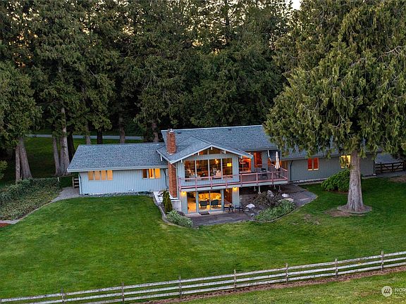 Mid-county gem in Lynden Schools! 2 homes + shop on 2.85 acres boast stunning views of Mt. Baker and Twin Sisters. Set back off the road in private park-like setting, the main house, 2500 sq ft, features mid-century charm with a daylight basement and split-level formal living and dining with vaulted ceilings, open beams, rock wall, gas FP, and huge picture windows that take in the view. 4 bd, 2.5 ba, formal and informal space, primary bd with 3/4 bath, family room w/ gas FP and attached XL 2-car garage/workroom. Second home, 1030 sq ft, single-story with 3 bd, 2 ba, offers privacy with a separate drive. A 36'x60' insulated/heated shop with crane and offices complete the package. Mature cedars, fenced yards, circular driveways and more!