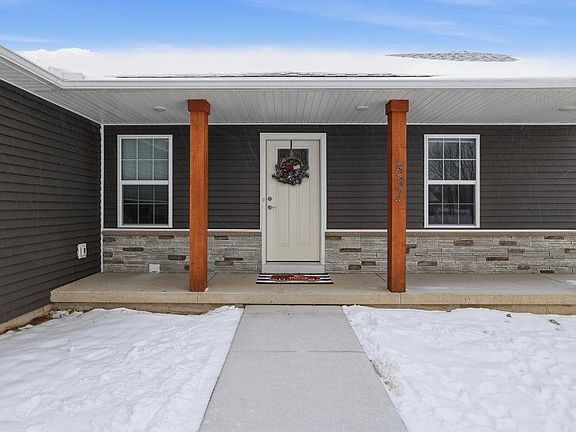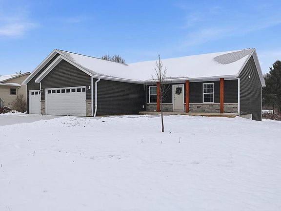 Step into modern comfort with this beautiful 2024-built home offering 3 bedrooms, 2 bathrooms, and a thoughtfully designed open-concept layout. The white kitchen features soft-close cabinetry, a spacious walk-in pantry, and all appliances included and ready for you to move right in and enjoy. Main-level laundry room adds everyday convenience. The private primary suite offers a peaceful retreat with its own bathroom and a generous walk-in closet. Another full bathroom is located near the other 2 bedrooms. A full, unfinished basement provides endless possibilities for future expansion and is already plumbed for an additional bathroom. Relax with a morning cup of coffee on the charming front porch and take in views of the Indianhead Golf Course right from your window. Located on a cul-de-sac for a peaceful setting. This newly constructed home blends modern finishes, functional living spaces, and a scenic location so do not miss your chance to make it yours!