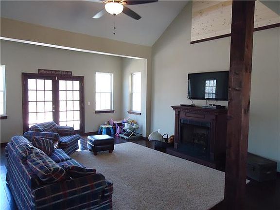Serene mountain home, home overlooks a stocked pond, efficient home is built with 2x6 exterior walls, granite countertops, tile and handscraped hardwood floors, tiled walk-in master shower, beautiful too much to list. Unfinished space above the garage.