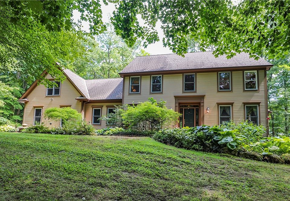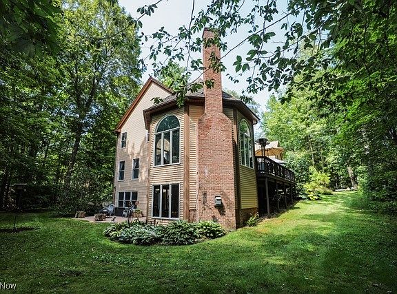 A private estate where elegance meets comfort. Set on 3.66 beautifully wooded acres, this distinguished residence offers exceptional privacy and refined living just minutes from Aurora's finest amenities. Inside, discover five spacious bedrooms, each with its own en-suite bath, including two primary suites thoughtfully placed for both convenience and retreat. A grand two-story foyer with a chandelier sets the tone, leading to a formal living and dining rooms with rich millwork, tray ceilings and timeless crown molding. The heart of the home is the gourmet kitchen, designed for both daily living and entertaining. Granite counters, a center island, double ovens, and an adjoining dining area open seamlessly into the family room and sun-filled octagonal sunroom with fireplace. The walk-out lower level extends the living space with a striking wood-clad library and fireplace, an additional primary suite, and access to a landscaped stone patio. Outdoor living continues with a full-length composite deck overlooking your private wooded setting. Additional features include a 3-car garage with electric openers, dual furnaces and water heaters, abundant storage and a long paved drive ensuring seclusion and approach. Your Aurora sanctuary awaits. Schedule your private showing today. Please click virtual tour link.