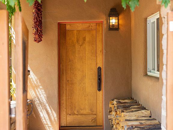 This fully furnished upscale and privately gated home is within a 5 minute walk from the renowned Santa Fe Railyard area and Farmers Market, only a mile from the historic Downtown Plaza. Enjoy this lush, Aspen filled enclosed property in the hot tub by the outdoor Kiva fireplace, underneath the southwest style portal or in the indoor full size Jacuzzi tub surrounded by candles. The property has a fully equipped kitchen, home entertainment system and indoor/ outdoor speakers for Bluetooth music connectivity.