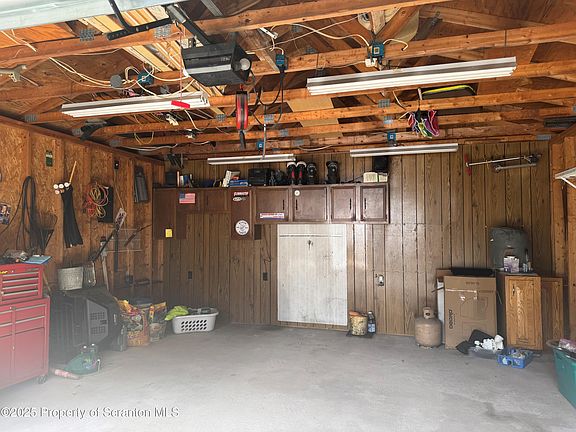 Room for a workshopWide entry doorsCeiling-mounted storage