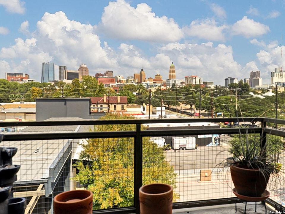 WOW! What a View! Wonderful view of the San Antonio downtown skyline right from your balcony. Enjoy luxury living in Southtown. This beautiful 1,500 sq ft with a open floor plan is elegance from top to bottom. The owners committed to a major investment to keep the industrial feel with a modern elegant look. ( complete list of upgrades in the additional information.) The kitchen has plenty of custom cabinet space with top of the line appliances. The granite countertops are just spectacular and the special added lighting makes extra bright. While you relax in the living area enjoy the city view. 2 full bedrooms very stylish with large shower areas and plenty of storage. The large comfortable bedroom also features a great city view and has plenty of added storage space. The office also serves as a guest bedroom. Additional features include gated entrance, nice pool, 2 covered parking spaces, 2 oversized storage units and a fitness center. There is also a pet grooming room and a great roof top terrace. Enjoy easy access to the large amount of restaurants in the area or take a stroll to downtown. Shopping includes HEB which is within walking distance. Come by and take a great view of the city.