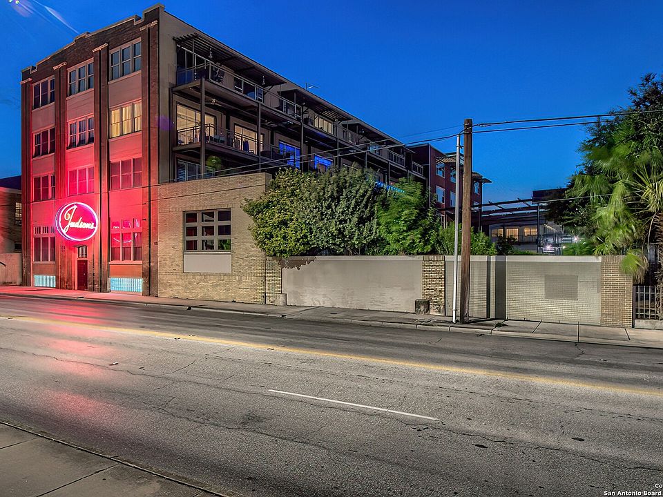 JUDSON'S CANDY FACTORY: Hip and trendy. High Ceilings, an Open Floor Plan and Plenty of Natural Sunlight make this 614sf Loft Feel Twice the Size. The Large Covered Patio Faces Lush Green Grass and the unit is Just a Few Steps Inside the South Flores Main Entrance. Enjoy a Large Covered Patio, 1 Covered Parking Slot (#77) and a Large Storage Unit. Rooftop Access, Pool, Gym, 2 Dog Parks, Dog Grooming Station, and Bike Storage Racks! Walk to the Courthouse, Blue Star, Riverwalk, HEB Market and More.