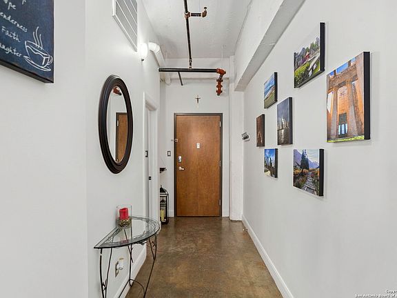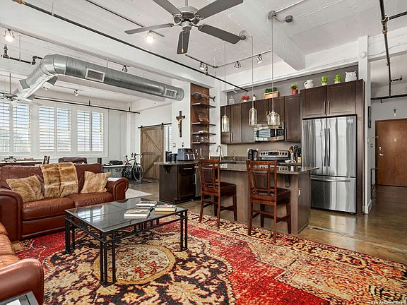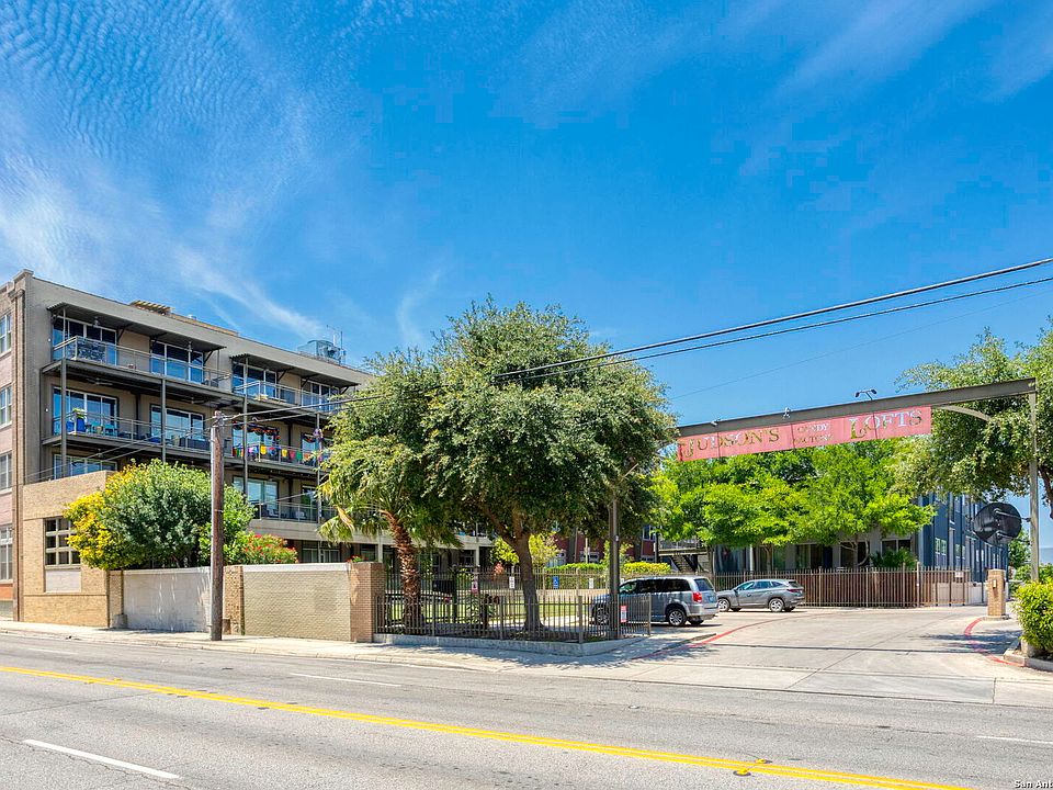 Incredible second floor corner unit in the extremely popular Judson Candy Factory Lofts. The downtown views are amazing from the 300 s/f covered terrace. This spacious 1122 s/f 1/1.5 condo offers an open floor plan (perfect for entertaining), high ceilings, concrete floors, track lighting, an abundance of natural lighting and plantation shutters. The island kitchen has hard surface countertops, stainless steel appliances, pendant lighting, filtered water system, breakfast bar and excellent cabinet space. The combination living and dining areas are open to the kitchen. The half bath is ideal for guests. The en-suite bedroom features built-ins, dual vanities, large shower, full-size stack washer & dryer and great walk-in closet. This gated community offers: swimming pool, gas grill, fitness center, indoor bike storage, pet grooming station and rooftop terrace. This condo also has 2 covered parking spaces near the rear entry door and a 8.5 X 30 climate-controlled storage unit in the basement. This loft is located in the highly coveted Southtown neighborhood, just steps from the King William section of the Riverwalk and the San Pedro Creek Cultural Park, convenient to the major interstates, HEB grocery store and some of the best restaurants and bars in the city, and all walkable!