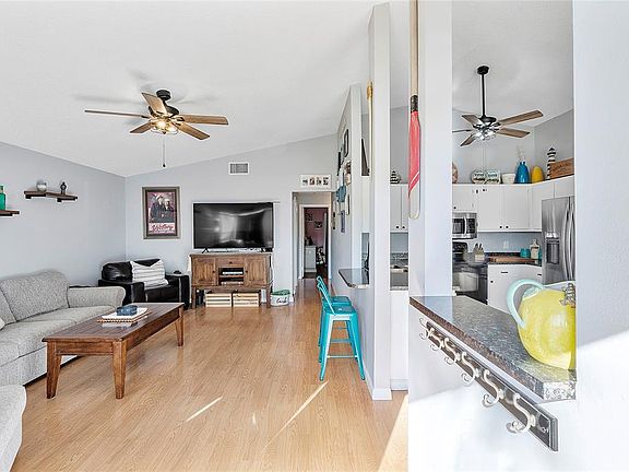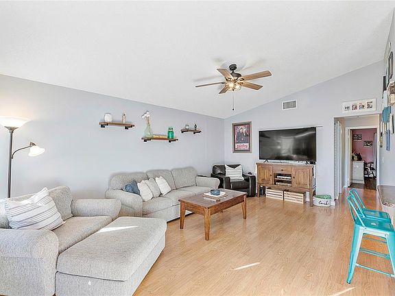 Welcome home to this charming 3-bed, 2-bath, 1-car garage residence offering a low HOA. Seller offering $5,000 credit toward buyer’s closing costs. Discover an inviting layout w/ vinyl flooring (2023), custom blinds, & closet built-ins. The primary suite features built-in storage. An impact slider glass door (2022) floods the space with natural light & leads to the covered patio—perfect for relaxing or entertaining. Enjoy the yard, above-ground pool, & storage shed for added convenience. The kitchen is equipped with newer appliances, washer is less than a year old. Storm protection includes panel hurricane shutters, giving you peace of mind. Roof (2007) has been well-maintained. Boat/RV parking allowed. This is a beautiful home with modern updates, ample space, & an unbeatable location.