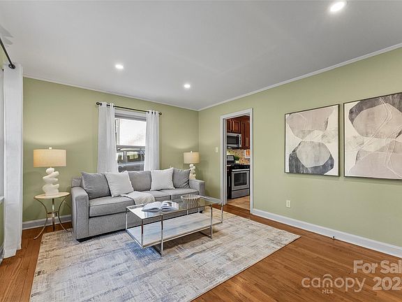 Beautifully updated ranch in charming Wilmore! This 2 bedroom, 1 bathroom home features hardwoods & tile throughout and updated lighting. The spacious kitchen has soft close shaker style cabinetry with pull outs, granite countertops, stainless steel appliances (fridge included!), an island with bar seating and attached dining room. There are two sizable bedrooms and a bathroom that was fully remodeled in 2022. The bathroom is equipped with marble tile, 30-in blue vanity, a soaker tub / shower, gold fixtures and a linen closet. There is an additional unheated 60-sqft utility room with laundry and amazing storage space! The backyard has a 6-ft wood privacy fence, shed, fire pit area and deck. 2023 HVAC system, 2023 tankless hot water heater, & 2018 roof. Conveniently located within 1 mile of Uptown, SouthEnd, Mint Street, local parks and so much more! Qualifies for 100% financing and up to $20,000 in assistance!