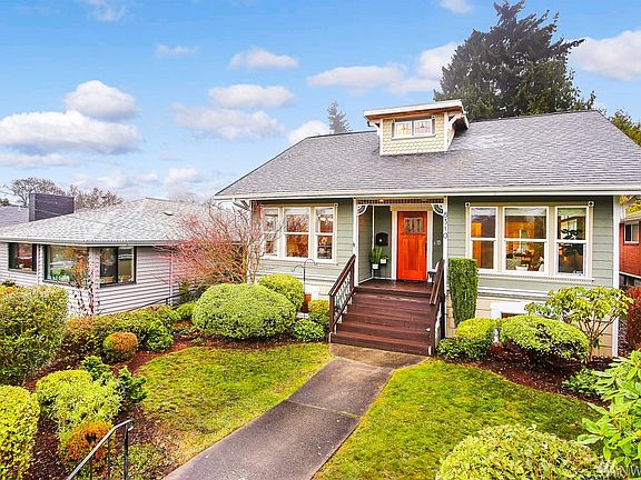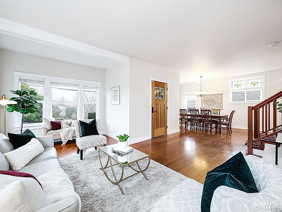 Step back in time through this extraordinary Sunset Hill craftsman. A place with beautiful balance of period detailing & modern updates. Historic craftsmanship shines through the original fir floors, one-of-a-kind curved mahogany staircase, stained glass windows & charming hexagonal bathroom tiles. The large and bright open layout on main has space to be together, yet areas for privacy & quiet. Kitchen w/granite countertops, stainless steel appliances, & french doors to the deck, offering the perfect setup for summer bbqs. Bonus room adjacent to living can be used as office or craft room. Additional flex space in the fully finished lower level. 2 car parking alongside XL storage shed.