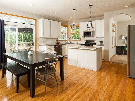 Spacious five bedroom home in Victoria! This home features a stone fireplace, built-in shelves, vaulted ceiling in the master and a well lit walkout basement with wet bar. The beautiful kitchen includes white cabinets, subway tile backsplash, stainless steel appliances, quartz countertops and a new dishwasher. Sitting on a cul-de-sac, this property has a deck, built-in bench, playgroud and firepit, perfect for entertaining.