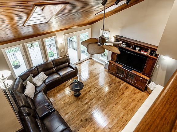 Wood-burning fireplaceFire pitVaulted great roomFormal dining roomMulti-level deckSurrounded by mature treesUpdated bathrooms
