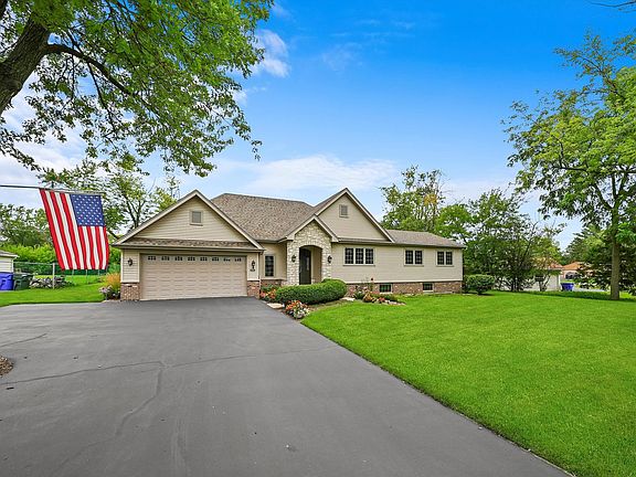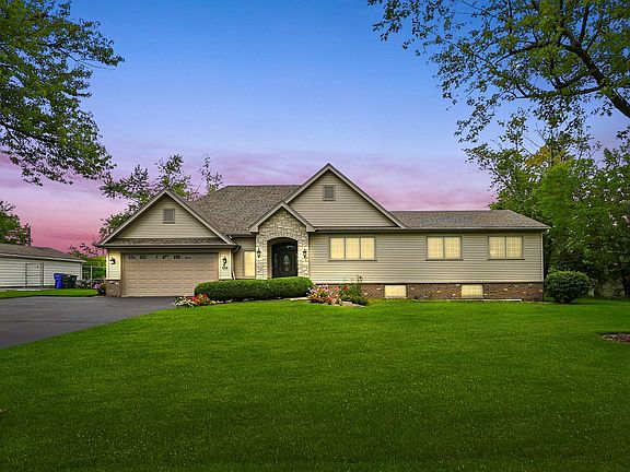 Fabulous ranch home situated on a spectacular, professionally landscaped half acre lot.This home took on a major remodel in 2010 with great room addition , new windows, siding , roof, brick and stone, furnace,Ac, and hot water heater. Entire kitchen remodeled in 2021 with 42 inch cabinets , quartz countertops,tiled back splash, ceramic flooring, stainless appliances, large walk in panry, and under cabinet lighting.You will love to entertain in the large great room featuring 10 foot ceilings, oversized windows allowing tons of natural light, and oversized fireplace with remote start, granite surround and custom oak mantle.All new stain free carpet installed in 2022 . Entire interior freshly painted. 6 panel solid oak doors and trim throughout. Master bedroom boasts boasts updated ensuite with nice walk in closet. Hall bath has also been updated.Heading downstairs you will find a finished lookout basement with a half bath and laundry area. Oversized 27 x 22 garage Seller wil leave cabinets on north wall.If your looking for privacy you will love the beautiful tree lined yard with large shed with electric . Great summer fun on large maintenance free Trex deck with natural gas line for grill. This is truly a incredible home and lot that any buyer will fall in love with!!