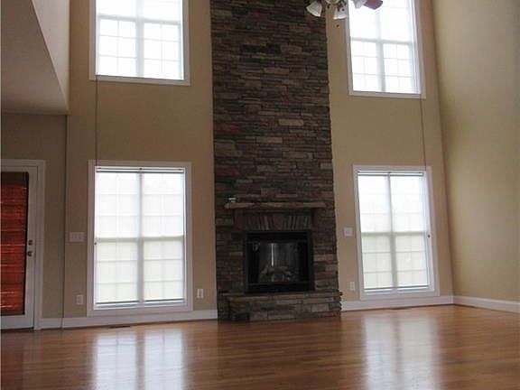A beautiful bright airy home w/ loads of open 1st floor living space including a spacious MBR suite. Upstairs are 2 more bedrooms (one huge), 2nd full BA & a flexible-use Bonus. Rooms flow freely from one to another. Noteworthy features include granite countertops, SS appl & HW's. The 2 story great room w/ floor to ceiling stone gas log fireplace is breathtaking & overlooks the big fenced back yard w/deck, arbor, and a variety ornamental plants. Covered front porch overlooks the neighborhood pond.