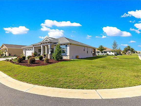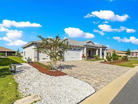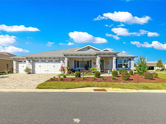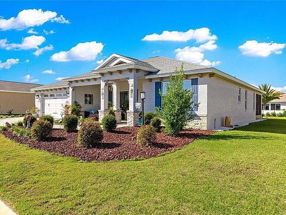 Welcome to this beautifully designed modern craftsman-style home that blends elegance, comfort, and functionality. The striking curb appeal features a paver driveway, manicured landscaping, and a covered front porch perfect for relaxing and greeting neighbors. Step inside to find an open-concept layout filled with natural light, tray ceilings, and neutral tile, on the diagonal, flooring throughout—offering both sophistication and easy maintenance. The gourmet kitchen is a chef’s dream, showcasing rich wood cabinetry, stainless steel appliances, a built-in oven and microwave, gas cooktop with range hood, and a large quartz island ideal for entertaining and casual dining. The spacious living room offers plenty of space to unwind or host guests, with large windows framing scenic neighborhood views. The owner’s suite provides a tranquil retreat with a generous layout, elegant tray ceiling, and an en-suite bathroom with a huge walk-in shower and walk-in closet. Enjoy Florida living at its finest on the screened lanai or the front courtyard-style porch, both surrounded by lush landscaping. The three-car garage is immaculate—offering room for vehicles, golf carts, storage, and hobbies. Every detail has been thoughtfully crafted—from the stacked-stone columns and accent lighting to the crown molding and modern fixtures inside. This home offers the perfect balance of luxury and leisure in a desirable active adult community close to golf, recreation, and everyday conveniences. Schedule your private tour today!