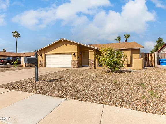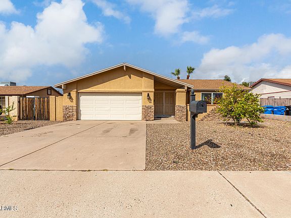 You will have it all in this charming single-story Phoenix home! Featuring a 2-car garage, RV gate/parking, and stone accented facade. Discover easy maintenance tile flooring throughout, neutral paint, a welcoming living room, and a bright family room with sliding door access to the back. The kitchen is a delight to work in with stainless steel/built-in appliances, ample wood cabinetry, gorgeous granite counters, and a wide peninsula breakfast bar. The primary bedroom has enough space to rest. It also has a spacious closet space and a private bath. Outback, forget about the weather, and plunge into the large sparkling diving pool. Also including a covered patio, and still lots of room for your creativity. Conveniently located near the main road! Get an up-close look! Don't miss it! NO HOA!