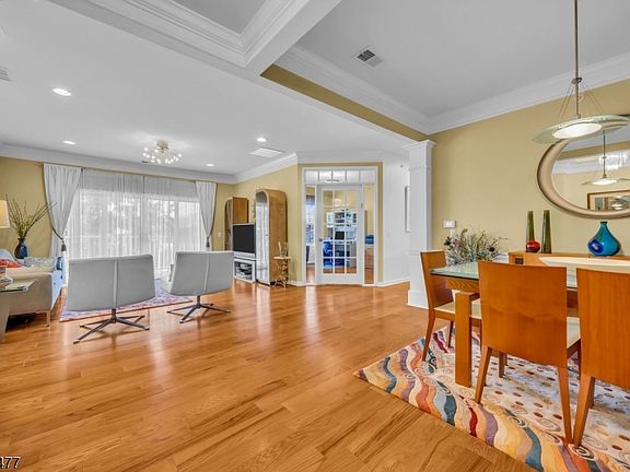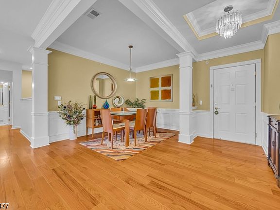 Beautiful Amber Model. One of the best looking models and locations at Somerset Run. This highly desirable, gated, active 55+ community of Somerset Run where the condominiums are designed with convenience, security & luxury in mind. The floor plan features 2 bedrooms, 2 full baths, a living room, dining room, eat-in-kitchen, a den/office and a private covered balcony. This Third floor End unit faces the Pond side of the building. Hardwood flooring with rubber padding throughout . The Newly re-done kitchen features 42" wood raised panel cabinets, custom Quartz countertops and backsplash, large pantry, newly cleaned and sealed grout on tile flooring & newer GE Profile appliances. The laundry room is conveniently located off the kitchen with cabinets and a utility sink. The primary ensuite bedroom offers a box tray ceiling & a generous Spacious custom closet. Newly updated Home has over $20,000 in Upgrades and High end finishes. Interior features include recessed lighting, crown & chair rail molding, 9' ceilings, 8x5 storage room on the same floor & another one off the balcony. Unit includes two parking spaces in a secure underground garage. All of this and resort-style amenities, including a 25,000 square foot clubhouse, indoor/outdoor swimming pools, locker rooms with showers and sauna, tennis/pickleball courts, bocce, exercise room, 24-hour gated entry, a full-time Lifestyle Coordinator and management on-site.
