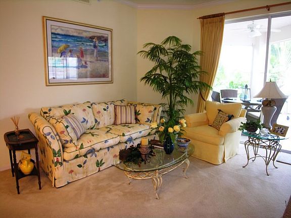 Tastefully decorated furnished like a model home. This ground floor coach home is light and bright and includes attached garage. Numberous upgrades include crown molding, lovely wallpaper accents and much more. Upgraded kitchen with open breakfast counter. Convenient location, only steps from the pool. Fiddlers Creek outstanding amenities include the award-winning Club and Spa and Fitness Center with swimmings pools, hot tub, tennis courts, fitness center and spa services. A golf membership is optional. Close to shopping, restaurants, beaches, golf courses, Marco Island and downtown Naples.