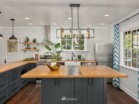 Walk into a breath of fresh air! This adorable bungalow has been remodeled from top to bottom! The kitchen arena is gorgeously remodeled w/ rustic yet classy finishes such as sleek blue shaker cabinets, butcher block counters, trough sink sit at the breakfast bar to participate with the Chef. The main floor is a perfect blend of cooking & entertaining. The primary bedroom has two closets & a WOW bath! Both baths have been updated! Don't miss the fully finished basement and utility area. This space is suited to be flexible to any of your needs! Think home office, game or hangout room, craft space, media room Come live with Lake Washington as your backdrop!