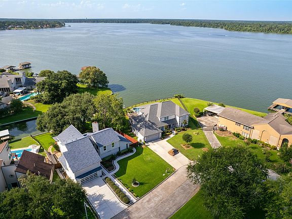 Luxurious lakefront home on Lake Houston with private boat dock and incredible waterfront views. Easy access to Atascocita Shores and Kingwood amenities, including top-rated school district, Bush Airport, and entertainment areas. Large bedrooms, spacious primary bedroom bath and walk-in closet. High-end finishes throughout - Pianetto Crystal White Porcelain Tile, Calacatta Bianco Quartz, Lunar Grey Kitchen and Bathroom Cabinets, Elite Appliances, Smart Home technology, Epoxy Slate Grey Garage Floor Coating, premium flooring, imported bathroom and kitchen hardware, custom shades, mood and color changing LED System, well-appointed landscaping. A truly exceptional property designed with the utmost quality in mind.