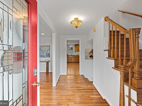 Elegant and Spacious 5-Bedroom Home with Exceptional Primary Suite.  Welcome to this beautifully appointed five-bedroom, three-full, one- half bath residence, offering an ideal blend of comfort, space, and style. The main level features freshly refinished hardwood floors and a thoughtfully designed layout that flows seamlessly from the inviting living room to the spacious dining area and into the eat-in kitchen. The kitchen is equipped with stainless steel appliances and rich hardwood cabinetry, perfect for both everyday living and entertaining. Just a few steps down, a generous family room awaits—complete with a wood-burning fireplace and sliding glass doors that open to the private rear yard. This level also includes a versatile den or office space, a convenient half bath, and direct access to the attached garage. Upstairs, you’ll find four generously sized bedrooms and a well-appointed hall bath. The primary suite is a true retreat, showcasing a luxurious, recently renovated bath with dual vanities, a soaking tub, and a separate shower. A large walk-in closet with Elfa storage completes this serene space. The lower level provides additional living flexibility with a recreation area, laundry room, fifth bedroom, and full bath. Outdoors, enjoy an expansive rear yard featuring a patio, lush green space, and a private basketball court—perfect for relaxing or entertaining in style.