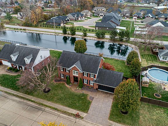 Welcome to 8311 Greencrest Drive in Newburgh, a beautifully updated home on a lake with a dock. Step inside the gorgeous two-story foyer and be wowed. There is a formal living room to one side (which could also be used as an office) and a dining room with Brazilian cherry floors to the other. The first floor also contains a welcoming family room complete with built-ins, a fireplace with gas starter, and a curved TV that remains with home. The well-appointed kitchen has beautiful cherry cabinets as well as Whirlpool gold appliances, newer quartz countertops and tile backsplash, and updated lighting. A half-bath and laundry room complete the first floor, don't miss the built-in ironing board. Continuing upstairs, you will find four bedrooms along with two full baths. The primary suite contains a breathtaking updated bathroom with large tiled shower and separate soaking tub. As you make your way outside, it's hard to miss the beautiful lake in your own backyard, but be sure to notice the covered patio (complete with TV and grill that stay with home), a storage shed, a dock, a hot tub (2022), and a built-in firepit. Some other details to note include a sprinker and irrigation system, a 5 foot safe in the garage, a tankless water heater, and new HVAC in August 2024. Everything has been done for you. Time to make this home yours!