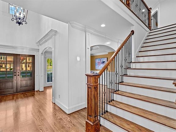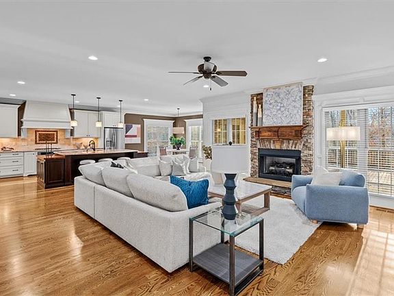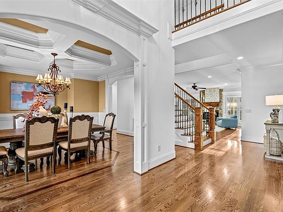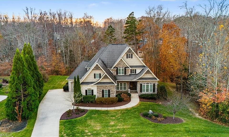 Beautiful custom-built home nestled in the picturesque Jessup Ridge community, just minutes from Northern Guilford Middle and High School. Thoughtfully designed for comfort and flexibility, the floor plan features two main-level bedroom suites, including a luxurious primary suite. The spacious primary suite offers a cozy fireplace, inviting sitting area, a tastefully appointed bathroom, and a large walk-in closet. A true chef’s kitchen awaits with a massive custom island offering generous counter seating, abundant cabinetry, custom granite countertops, a hidden walk-in pantry, and a bright breakfast area. The adjoining great room is highlighted by a stacked-stone fireplace. Upstairs, you’ll find 2 large bedrooms, each with walk-in closets and en suite bathrooms, plus a theater room complete with custom built-ins and a wet bar—perfect for movie nights or the big game. Step outside to a large deck overlooking the private backyard, ideal for relaxing or entertaining.