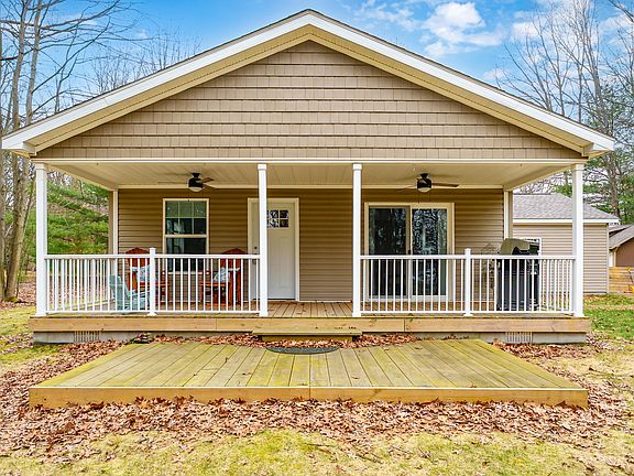 Stunning 3-year-old home with deeded access to 50 feet of frontage on all-sports Silver Lake—private ! This 2-bed, 2-bath home offers over 1,400 sq. ft. of open living space, featuring a spacious kitchen with a farmhouse sink, large island, and ample cabinetry that flows into bright dining and living areas. The primary suite includes a walk-in closet and full bath. Enjoy lake views from the porch, plus a large shed for storage and available high-speed internet. Boat and furnishings available separately. Just 15 minutes to Lake Michigan, this home is perfect as a year-round residence or a low-maintenance getaway.