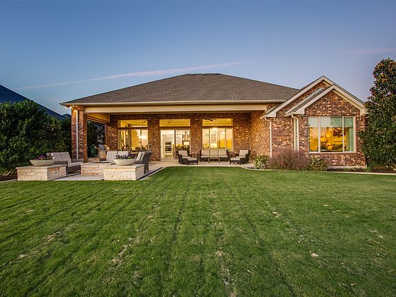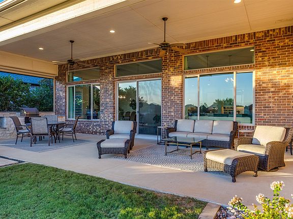 Welcome to luxury golf course living in the prestigious, guard gated Robson Ranch community in Denton Texas, where this beautifully upgraded single story home delivers exceptional style, comfort, and value. More than three hundred forty thousand dollars in enhancements elevate every space including engineered hardwood floors throughout, a marble spa shower in the primary suite, premium cabinetry, GE Profile appliances with a Cafe induction cooktop, custom media features, designer lighting, and upgraded tile. The open layout highlights natural light and unobstructed golf course views that connect seamlessly to an inviting outdoor living area with an extended patio, outdoor kitchen, gas fire pit, and remote operated sunshade for year round enjoyment. The expanded three car garage offers epoxy flooring, extra depth for large vehicles, and attic storage. Additional upgrades include Hunter Douglas window treatments, crown accents, insulated garage, radiant barrier, and zoned HVAC for enhanced efficiency. With full brick exterior construction and thoughtful design throughout, this home is truly move in ready. Robson Ranch offers resort style amenities including championship golf, pickleball and tennis courts, pools, fitness centers, dining, clubs, walking paths, and a welcoming active adult lifestyle. Experience the perfect blend of premium location, beautiful finishes, and everyday comfort on the golf course in one of North Texas most desirable master planned communities. Discover a home that provides a better lifestyle every day.
