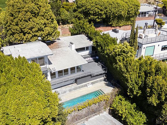 Welcome to this serene mid-century retreat perched in the hills above the world-famous Chateau Marmont, just moments from the iconic Stahl House. Offering breathtaking panoramic views of the city skyline, the living room is a true showstopper, featuring floor-to-ceiling windows, sliding glass doors, rich hardwood floors, and dramatic vaulted wood-beamed ceilings. The chef's kitchen is outfitted with top-of-the-line Sub-Zero, Viking, and Bosch appliances, complemented by a picture window framing views of the serene garden. The luxurious primary suite is a private oasis, with French doors that open to a tranquil rock garden complete with a soothing water feature and peaceful seating area. The spacious en-suite bath boasts dual vanities and a skylight that fills the space with natural light. A secondary bedroom features custom floor-to-ceiling shelving and an en-suite bath, making it perfect as a guest suite or inspiring home office. Upstairs, a third bedroom offers stunning views stretching all the way to Downtown Los Angeles. Thoughtfully remodeled throughout, the open-concept layout flows seamlessly to an expansive deck and sparkling swimmer's pool ideal for relaxing in the sun or hosting unforgettable gatherings. Tall privacy hedges surround the property, creating a secluded sanctuary in a coveted multi-million dollar neighborhood just above the legendary Sunset Strip and minutes from premier dining, shopping, and nightlife.
