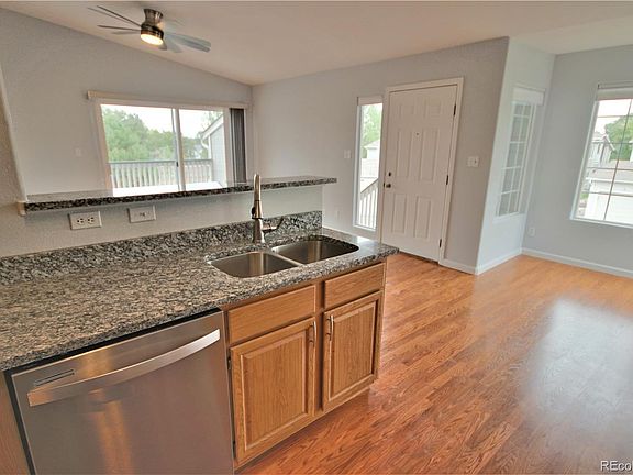 Updated and clean. Kitchen has granite counter tops, breakfast bar, stainless appliances, vaulted ceilings and opens to living room and dining area. Master suite has vaulted ceilings, walk in closet and full bath with granite vanity. Great views of mountains and the city from balcony and living room. Updated condo. Great location. Easy access to DTC, Downtown, Park meadows and mountains. This community is part of Highlands Ranch HOA and has full access to the recreation center and all amenities. 1 car detached garage and lots of unassigned parking spaces.