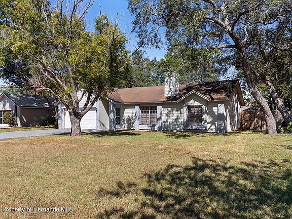It is a 2-bedroom 2 bath split floor plan; living room/dining room has a wood burning fireplace; and a family room; master bedroom has a walk-in closet; guest bath has access to the pool area. Nice size front and backyard with wood fence and a really cute tree house. In just a few minutes you can go see the beautiful real-life mermaid show and go see the gorgeous sunsets at Pine Island beach. Only 45 minutes from Tampa International airport. Close to great restaurants, shopping and medical facilities. About 1 hour drive to the great famous beaches at Clearwater and St. Petersburg.