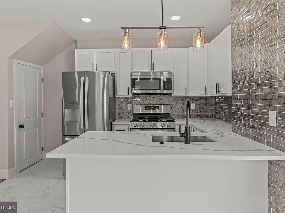 Welcome to this beautifully renovated home located on a very quiet Cul-de-sac Street that only features single family homes or other twin homes as your neighbors in the very sought after Penrose Park Neighborhood. As you approach the home, you'll notice your driveway can hold many cars for your guests or maybe just for you as a car enthusiast. There is also a separate detached garage that can be used for a storage, a workshop, mancave, she-shed or whatever your imagination desires. Inside you will find that no expense has been spared. The high-end kitchen features brand-new stainless-steel LG appliances that include, new stove, dishwasher, built in microwave and side by side refrigerator. The tastefully designed glossy glass mosaic tile backsplash is a definite showstopper. The countertops are quartz and the island features a deep sink with gooseneck faucet making kitchen hygiene maintenance a breeze. Rounding out this kitchen is the practical soft close drawers making all the elements of this kitchen upgrade a great one. Right off the kitchen are the new sliding glass doors leading to, you guessed it, your new spacious deck. Imagine setting up your private backyard oasis with your new deck furniture, bbq grill and accessories. The backyard itself also is fenced and has plenty of room for that four-legged fur-baby you've been wanting or space for your family to just enjoy. Upstairs you will find a brand-new large bathroom with those gorgeous porcelain tiles and rainforest shower head. The bedrooms are bright, freshly painted and feature neutral flooring. The basement houses a washer and dryer for your convenience, and your brand-new water heater. The new items featured in this home are abundant and not limited to some new windows, new central air conditioning unit, new lighting, new cabinets, floors and bathroom fixtures. This home is close to I-95, the airport, I-76 expressway, neighborhood shopping, grocery stores, pharmacies and the United States Post Office Hub. Just unpack your bags and move right in to your new beautiful home on a very desirable street.
